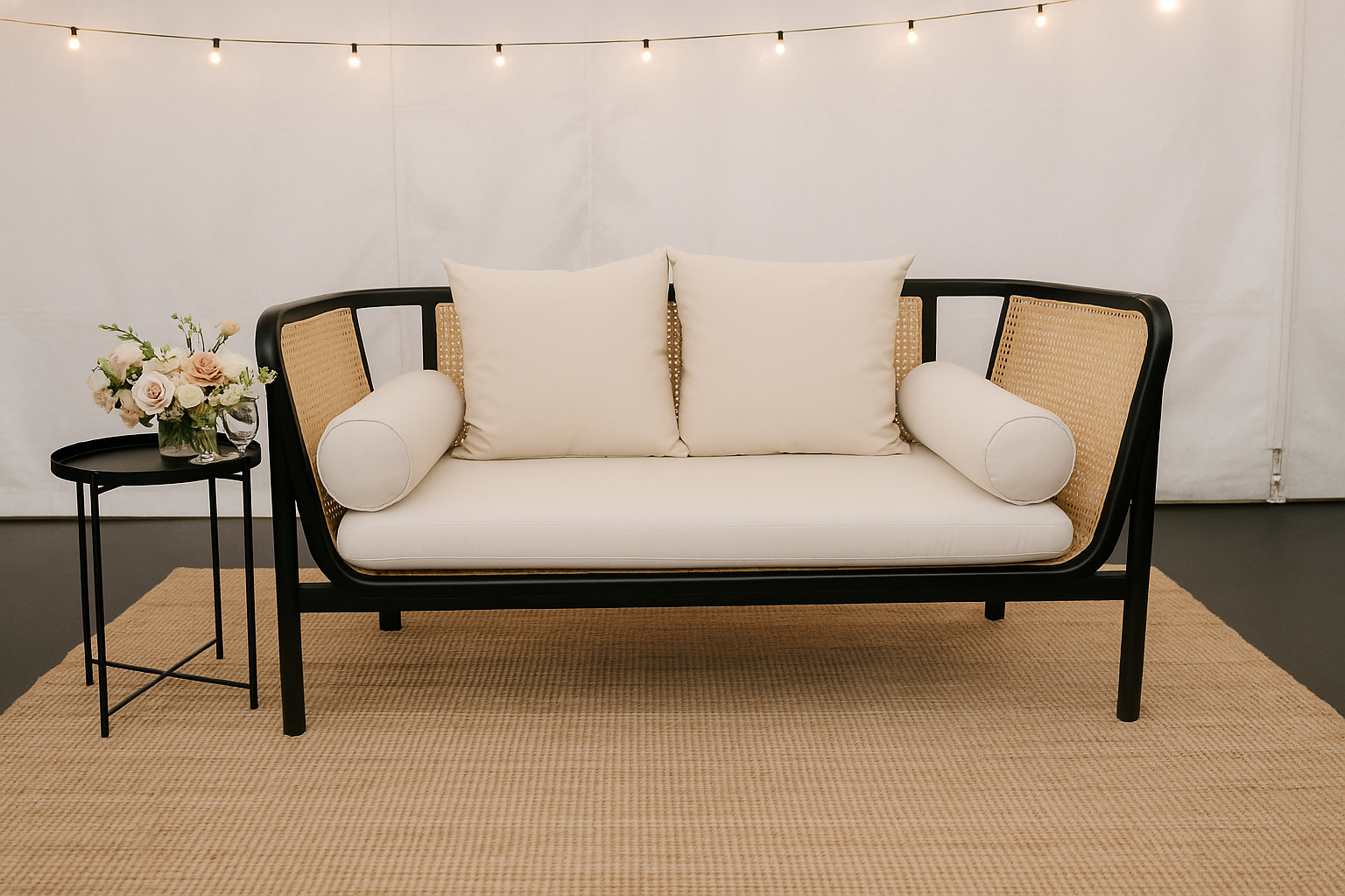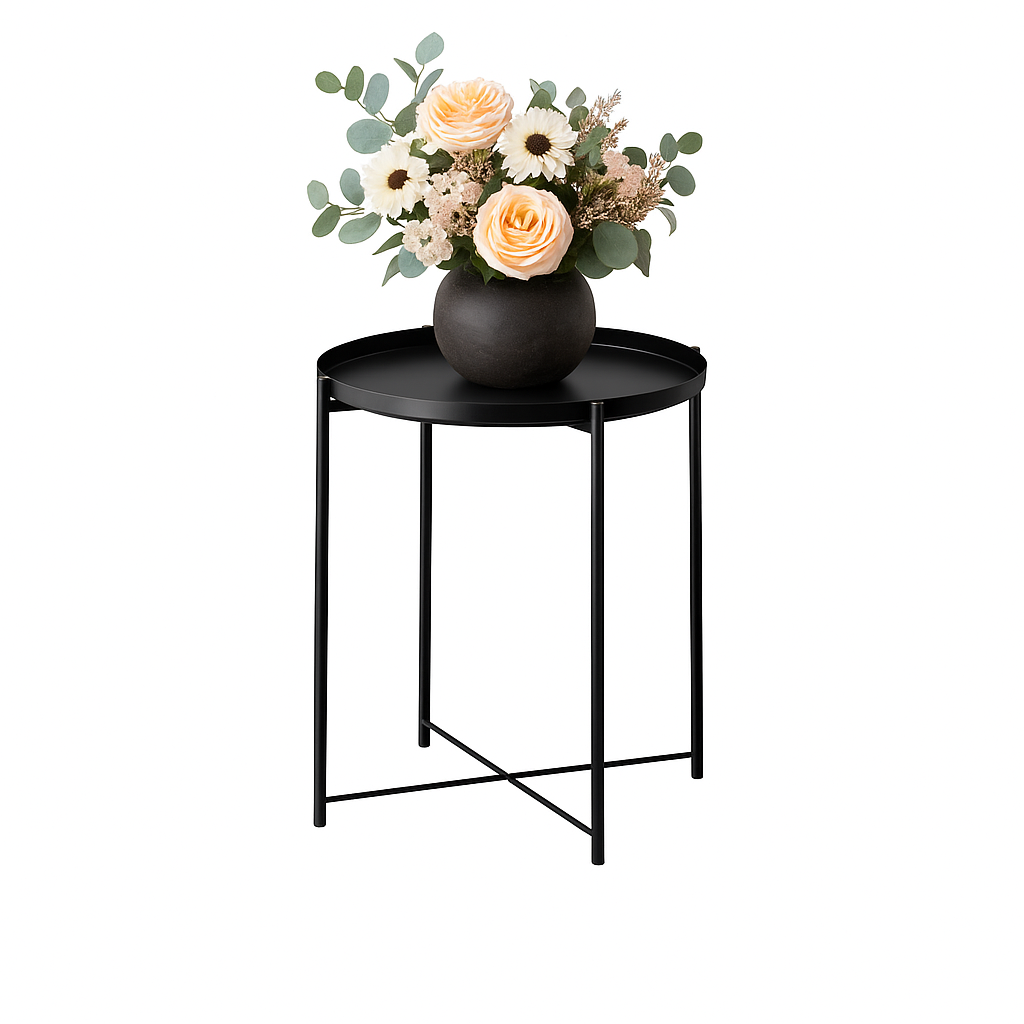 Elevate your event décor with the sharp, contemporary elegance of our Black Metal Tray Side Table. Available for hire across Sydney, this table features a minimalist, all-black design that delivers a sophisticated, modern industrial look perfect for corporate events, cocktail parties, and chic functions. Functionality is key: the round top includes a subtle raised edge, ensuring drinks and canapés stay secure and stable. Use it to complete your lounge settings or as a stylish, dependable stand for small displays. The Black Metal Tray Side Table is the practical and polished choice for any modern event.