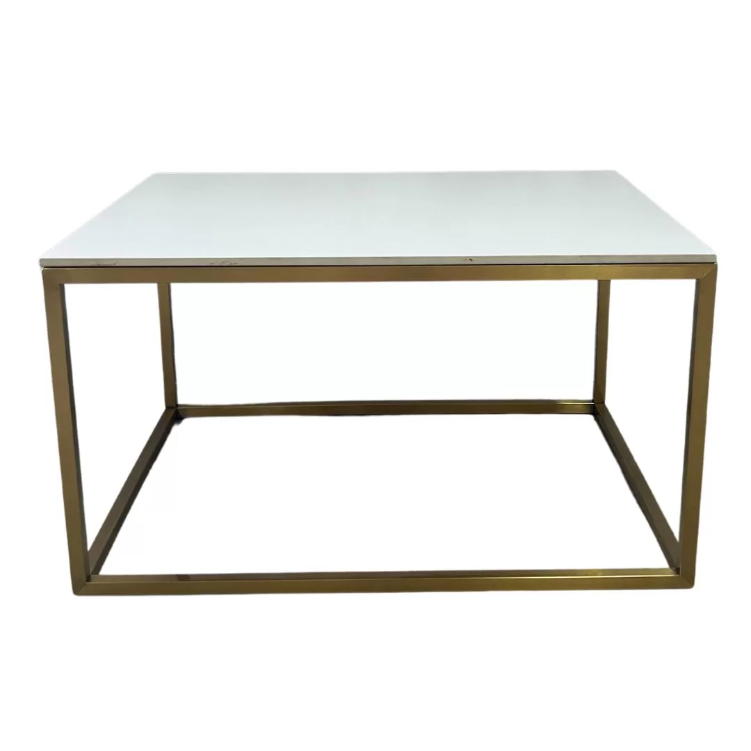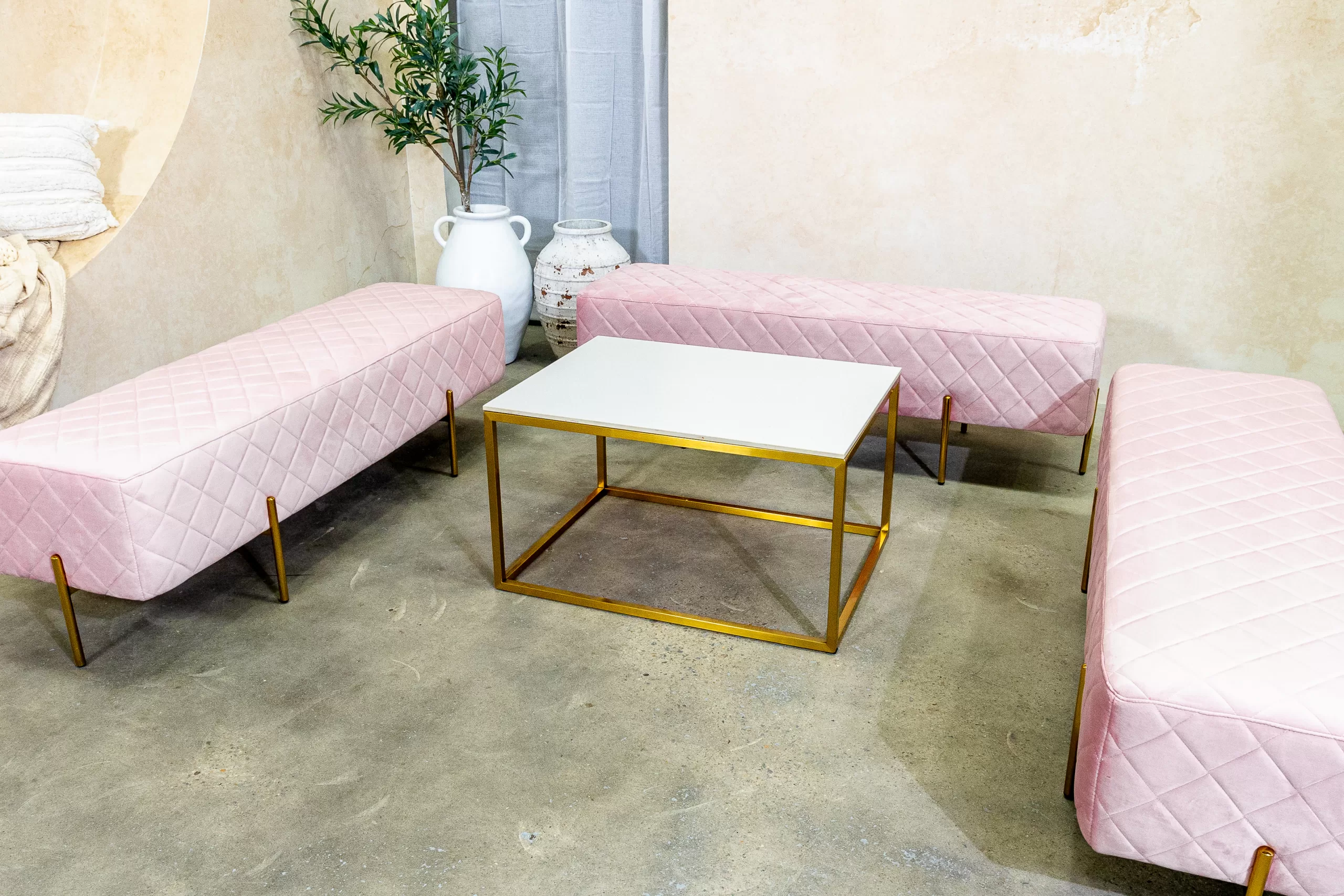 Our rectangular gold coffee table hire has a sturdy iron gold frame and a matte white table top, this will complement any event theme or decor and is most suitable for weddings, private parties, birthdays, corporate function and many more. You can match our gold coffee table with our sofas and lounges to create the look you want!